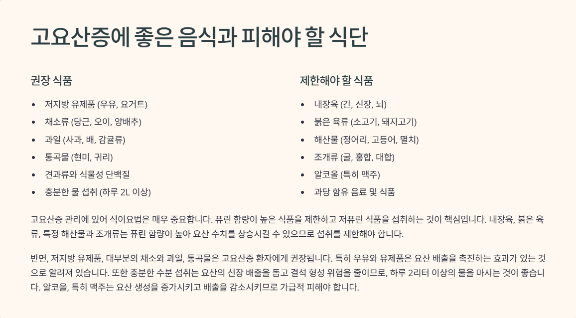 🥗 고요산증에 좋은 음식과 피해야 할 식단