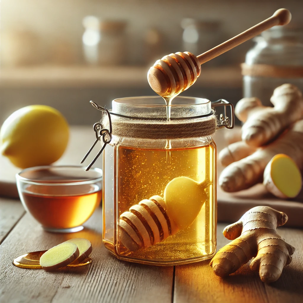 재료: 생강(얇게 썬 것) 10g, 물 500ml, 꿀 또는 설탕 1큰술