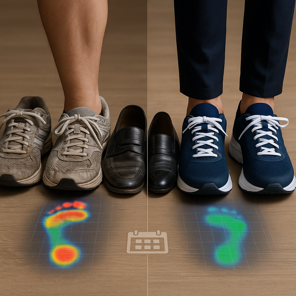 신발의 수명도 중요해요. 밑창이 닳고 쿠션이 눌리면 지지력과 균형감이 떨어지기 때문에 주기적인 교체가 필요해요. 일반적으로 운동화는 6개월~1년, 구두는 1년~1년 반 사이에 점검해보는 것이 좋아요. 오래된 신발은 착화감은 익숙하더라도 건강에는 해로울 수 있어요.