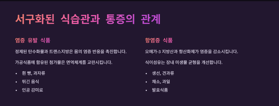 요즘 바쁜 생활 속에서 간편하게 먹을 수 있는 가공식품과 패스트푸드를 찾는 사람들이 정말 많아졌어요. 샐러드나 채소보다는 햄버거나 냉동식품을 선택하는 일이 흔하죠. 하지만 이런 서구화된 식습관은 소화기관에 큰 부담을 주고, 우리 몸속 염증을 자극해 만성 통증으로 이어질 수 있어요.