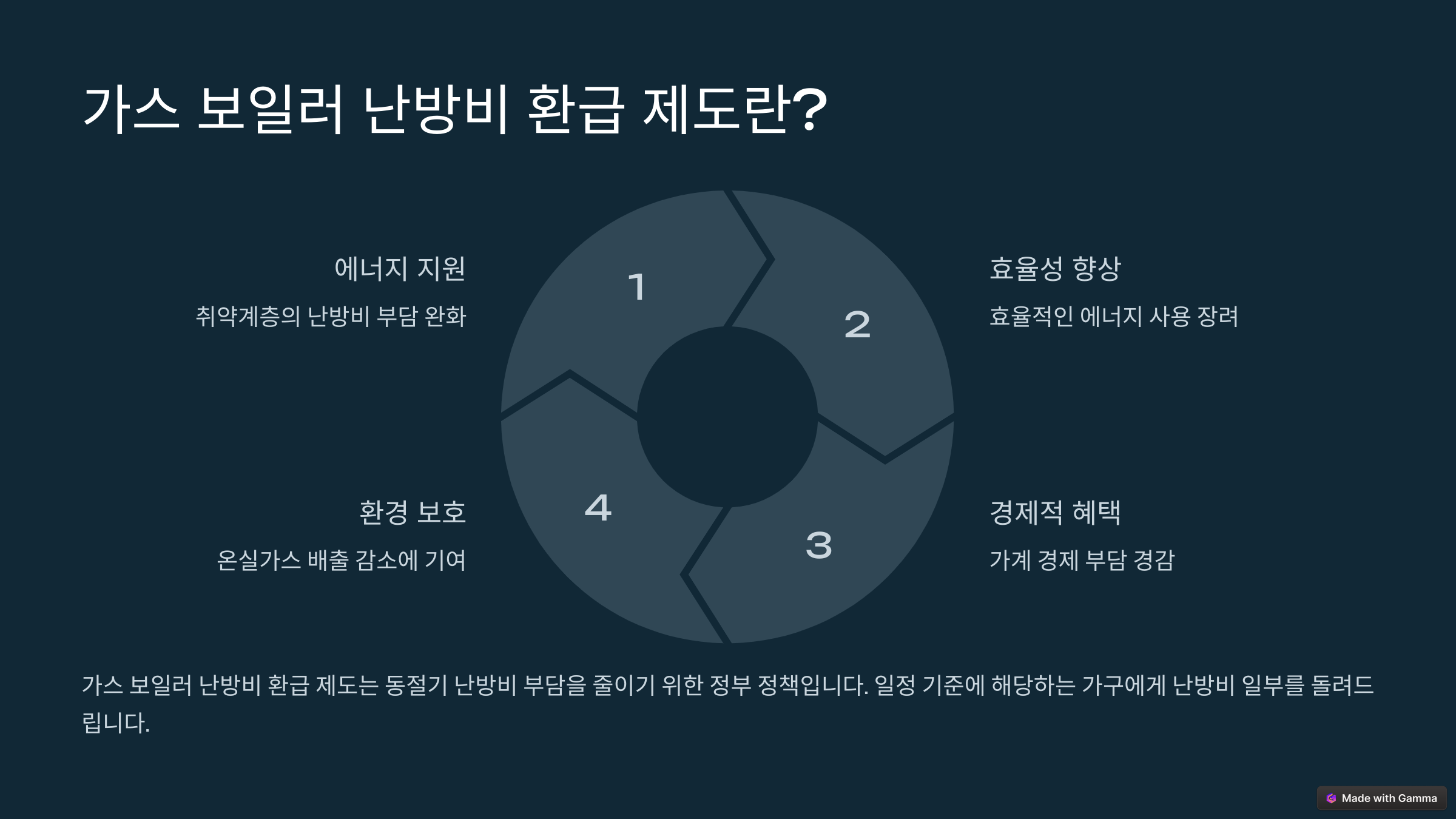 가스 보일러 난방비 환급 제도는 에너지 비용 부담을 줄이기 위해 정부에서 지원하는 프로그램이에요. 주로 저소득층, 취약계층, 다자녀 가구를 대상으로 난방비 일부를 환급해 줘요. 🏠