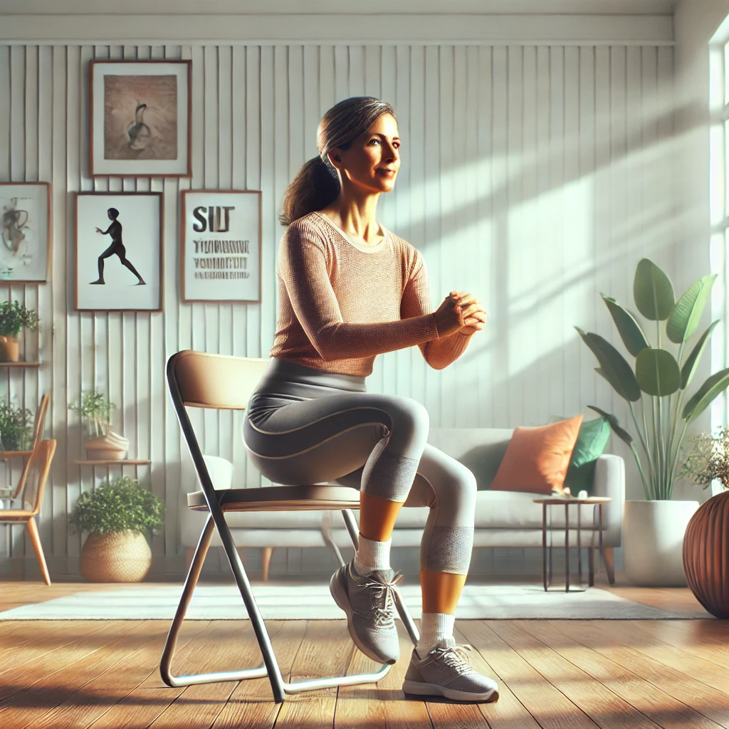 의자와 작은 공간만 있으면 어디서나 할 수 있는 간단한 운동으로, 집에서도 가능합니다.